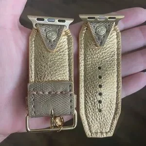 Stylish gold watch band with a textured pattern and decorative gem accents. Perfect for adding elegance to your watch.