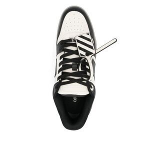 black white leather upper translucent rubber sole arrow motif lace-up fastening signature tag