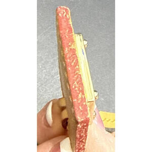 DOONEY & BOURKE Y2K Square Logo BEIGE BROWN LEATHER LUGGAGE Key FOB TAG in good preowned condition however, there is some wear on the outline of the leather that should be red