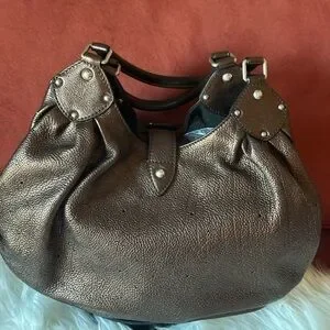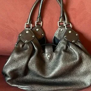 This handbag is in beautiful preloved condition; Bronze exterior with silver hardware. Slight tarnishing on hardware. Shows signs of wear on exterior and interior.