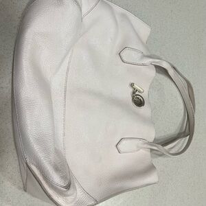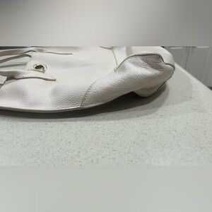 This elegant cream tote bag is perfect for any occasion. Its sleek design and neutral color make it a versatile addition to your wardrobe.