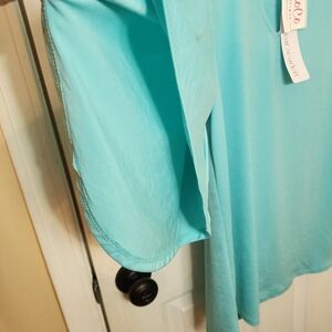 Elevate your wardrobe with this elegant aqua top from CO. Perfect for any occasion, its soft fabric and stylish design offer both comfort and flair. Flowy! Awesome sleeves! NWT