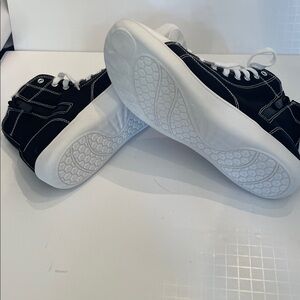 Add some fun in your wardrobe with these high top sneakers. Light weight and comfortable the sneakers are great for casual wear. Red emblem is removable (see photos). Brand new.