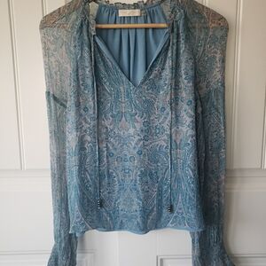 Ramy Brook Blue Paisley Sheer Silk Overlay Blouse XXS