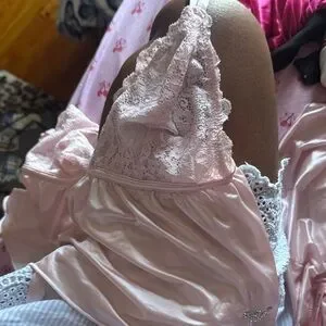 Experience comfort and style with this elegant pink lace sleepwear set. Perfect for a cozy night's sleep.