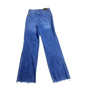 Judy Blue Jeans Women’s 7/28 Mid Wash Straight Leg Raw Hem Distressed Denim