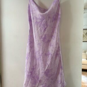 Purple tie-dye slip dress. Silky material. Super flattering fit.