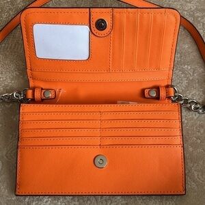 Brand New Calvin Klein Orange Wallet Organizer Crossbody Purse Silver Tone Chain