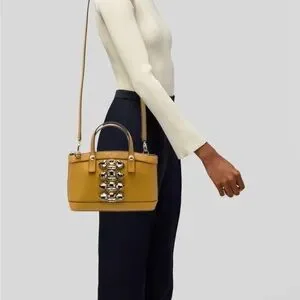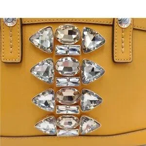 Stylish Henri Bendel crossbody in mustard. Features bold gem accents. Perfect for adding flair to any outfit. She is in excellent condition. Gorgeous crystal embellishments. Two tone engraved hardware. Can be worn as a handbag, Crossbody bag, or shoulder bag. She is absolutely gorgeous and is perfect for year-round use. Rare luxury dead stock since 2019 that continues to rise in value every single day. Fastest selling brand. Own a piece of iconic fashion history with this gorgeous statement bag. Please contact me with any questions. Also catch my show for great deals, low starts, and fun giveaways!