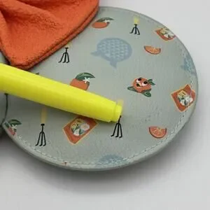 --Features = Faux leather ears with Epcot, Orange Bird, citrus, and gardening graphics; large textured orange bow and enamel Orange Bird in flower pot centerpiece; orange plush inner band; Disney Parks x Loungefly metal logo plaque; official Disney and Loungefly branding on inner tags.