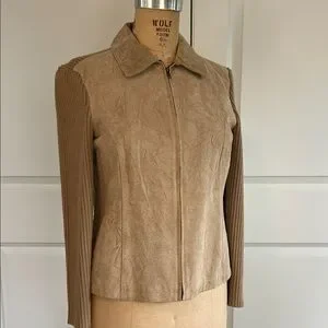 Coldwater Creek Suede and Sweater Jacket with Ribbed Sleeves