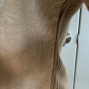 Stylish beige jacket with textured design. Features ribbed sleeves for added flair and comfortable fit.