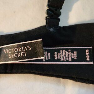 A great find ! Beautiful lace underwire bra by Victoria's Secret. Fabric is poly/elastane. Underwire, unlined demi cup. Closes in back with two hooks. Straps are adjustable AND can be switched in the back for a racerback look.