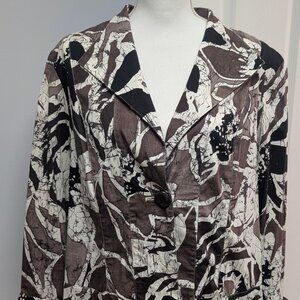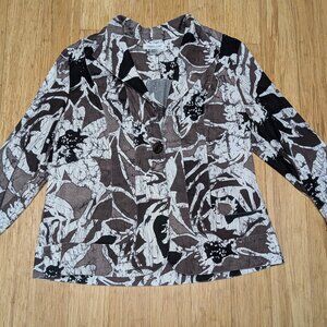 Very cute brown, black, white patterning on this lightweight Coldwater Creek jacket. A definite don't miss!