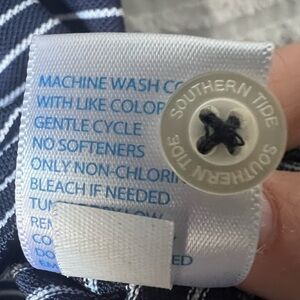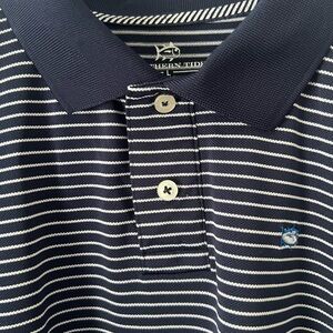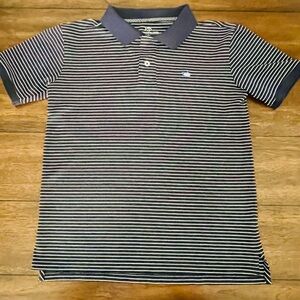 Southern Tide comfy for kids -navy and white striped polo shirt. Performance fabric= No iron!! 96% polyester 4% spandex