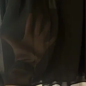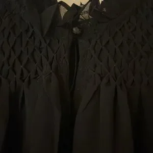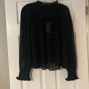 Chic sheer black blouse with ruffled details. Lightweight and stylish.