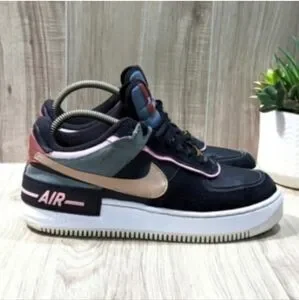 NIKE Air Force 1 "SHADOW" Women's Size 8.5 Black Leather Low Top Sneakers