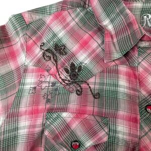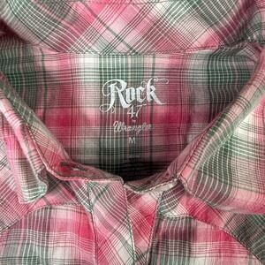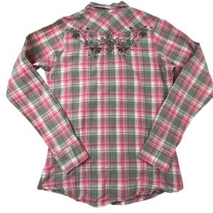 Rock 47 By Wrangler Womens Shirt Size Medium Pink Plaid Pearl Snap Western