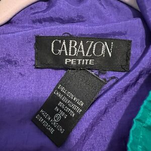 Authentic 1990s windbreaker in excellent vintage preowned condition. Purple magenta teal and white color block pattern. Shiny wind resistant nylon outer and soft cotton polyester lining, perfectly lightweight for the crisp Fall days ahead or would be fantastic for a theme party! Labeled Petite Small.