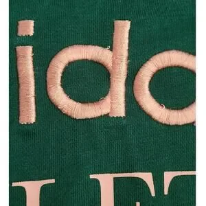 -The sweater is in pre-owned condition with no rips or holes, but does have some pulled threads on the embroidered letters.