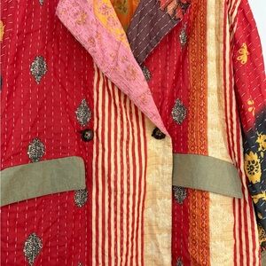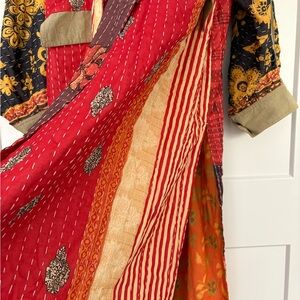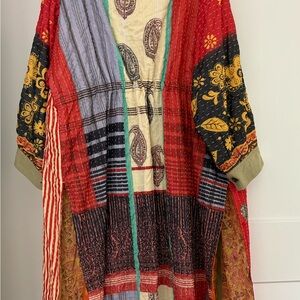 NWOT Free People Island Bright Kantha duster. Fully lined, double breasted, 100% cotton. Drawstring at waistline to cinch as another way to style.