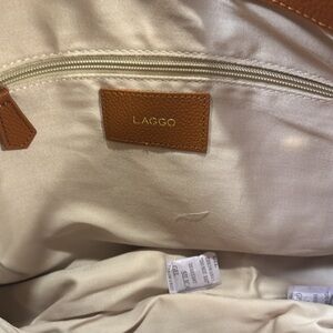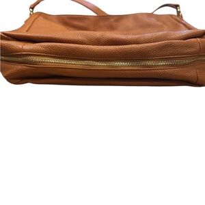 Laggo Taylor Pebbled Purse Cognac Leather Front Zipper Pocket Shoulder Strap