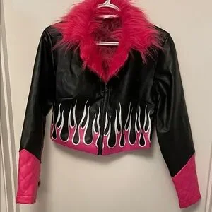 Women’s Bratz Pink Faux Fur/Black Jacket Size Small