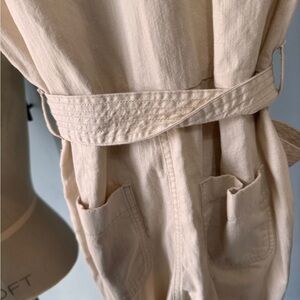 Stylish cream jumpsuit with button-up front. Features a sleek design for a modern look.