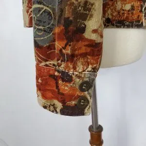 Fall Winter colors of rust, green, tan, black button up corduroy blazer jacket
