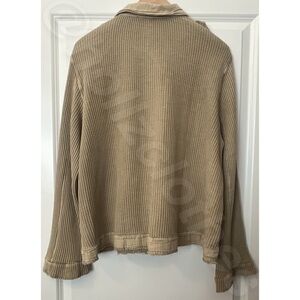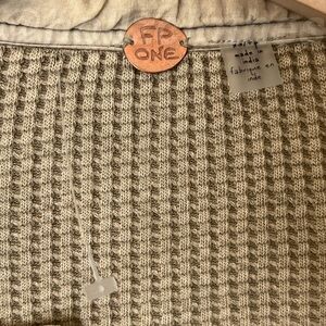 NWT Logan Jacket by FP One from Free People. Color is called, “Green Tea Leaves,” which is a washed olive green khaki color. Waffle knit material. Collared style. Buttons down the front. Slant side pockets and flap chest pockets for a utility design. Slight flare / bell style sleeves. Lightweight. 100% Cotton. Brand new with tags, never worn. MSRP $128. Size XS. Please see measurements for better fit.