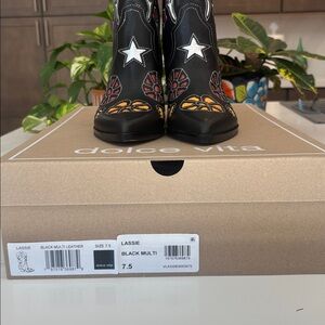 Dolce Vita Western Boot Black Multi Leather Lassie Size 7.5 NWT