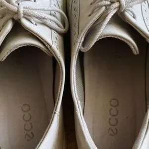 Stylish and comfortable Ecco tan lace-up shoes perfect for any occasion. Features a perforated design for added breathability.