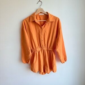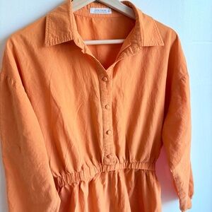 Elastic waist, elastic wrist cuffs and fabric covered button front. Beautiful crisp collar.