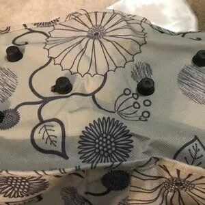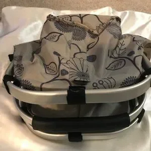BRAND NEW STURDY GRAY W/BLACK FLORAL, DOT DESIGN COLLAPSIBLE, INSULATED PICNIC/? BASKET.