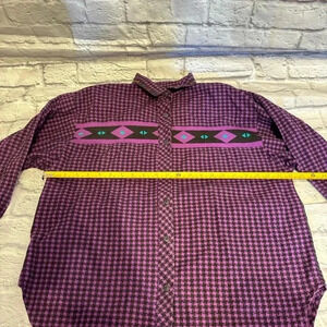 Vintage Hang Ten Southwest Houndstooth Button Front Shirt Size Large 80s/90s. Embroidery detail on the collar.