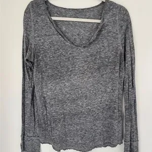 Chic Zadig & Voltaire charcoal long-sleeve blouse, crafted from soft, comfortable fabric ideal for everyday wear. Features a small hole on the left elbow, as shown in photos.