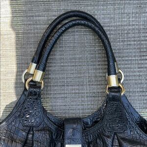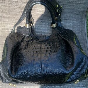Questions? Leave a comment below! BRAHMIN BAG Black Melbourne croc Embossed shoulder handbag