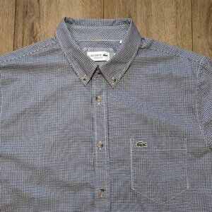 Lacoste Men's Regular Fit Twill Checkered Collared Button Down Shirt M/L