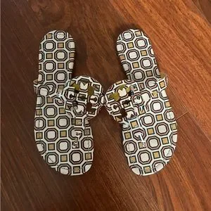 Tory Burch Miller Geometric Printed Patent Leather Sandals Size 6.5