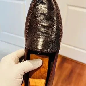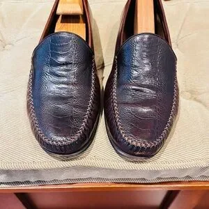 Step out in style with these elegant burgundy/ Croc leather loafers. Beautiful shoes, all leather outer sole. Perfect for any occasion. Excellent Condition. L5R