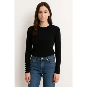 Women's Zara Black Gold Button Crew Neck Sweater M
