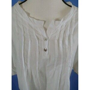 Organic Rags Blouse Size M White Pleaded 3/4 Sleeve Cotton Italy