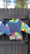 Vibrant quilted hoodie featuring a playful cartoon design. Multicolored with blue, red, yellow, and green patches.