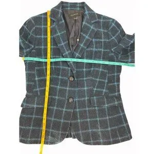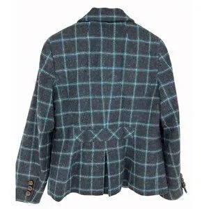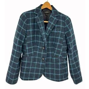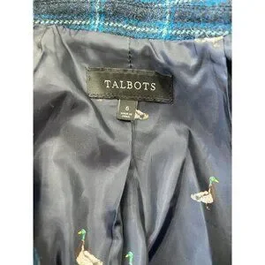 Talbots Womens 6 Wool Blend Navy & Turquoise Plaid Blazer AOP Lining Academia
