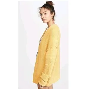 Free People Womens Dark Yellow Chunky Knit High Hopes Cardigan Sweater XS