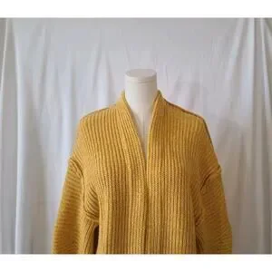The Free People Women's Dark Yellow Chunky Knit High Hopes Cardigan Sweater in XS is a stylish and comfortable piece perfect for casual occasions. Made from a cotton blend material, this chunky-knit sweater features a regular fit and is designed as a cardigan style. With its vibrant yellow color and high-quality construction from the reputable brand Free People, this sweater is a great addition to any woman's wardrobe.
