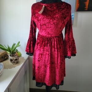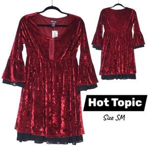 Hot Topic Red Velvet Bell Sleeve Dress – Size Small NWT Romantic Gothic Witchy