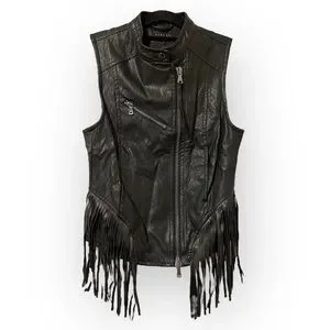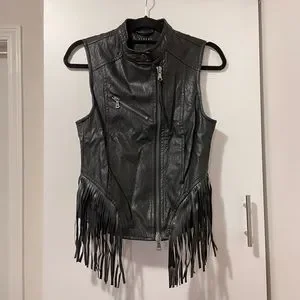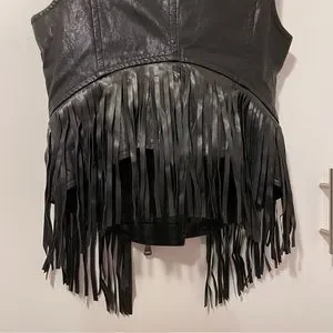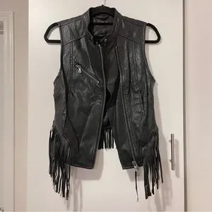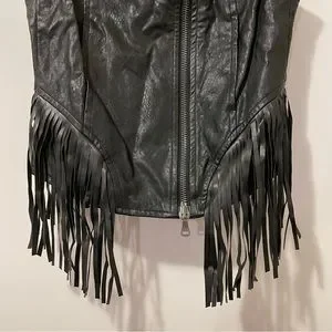 NWT Sisley The Rock Club Faux Leather Fringe Moto Vest Size XS