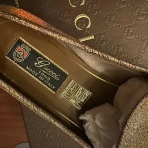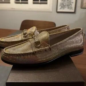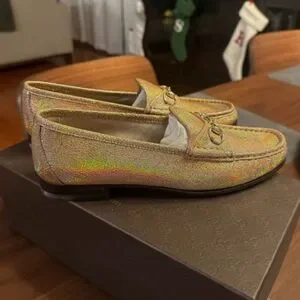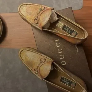 Step out in style with these luxurious Gucci gold loafers. Perfect for adding a touch of elegance to any outfit. These Gucci's are not leather, they are canvas . Great for spring and summer.