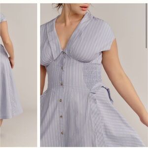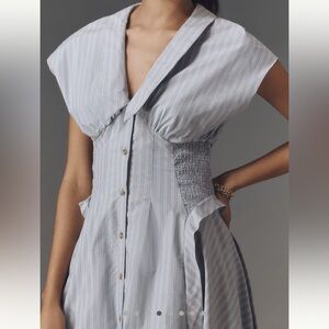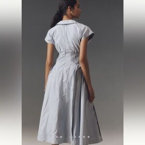 nwt by ANTHROPOLOGIE sz M Short-Sleeve V-Neck Midi Dress in blue motif